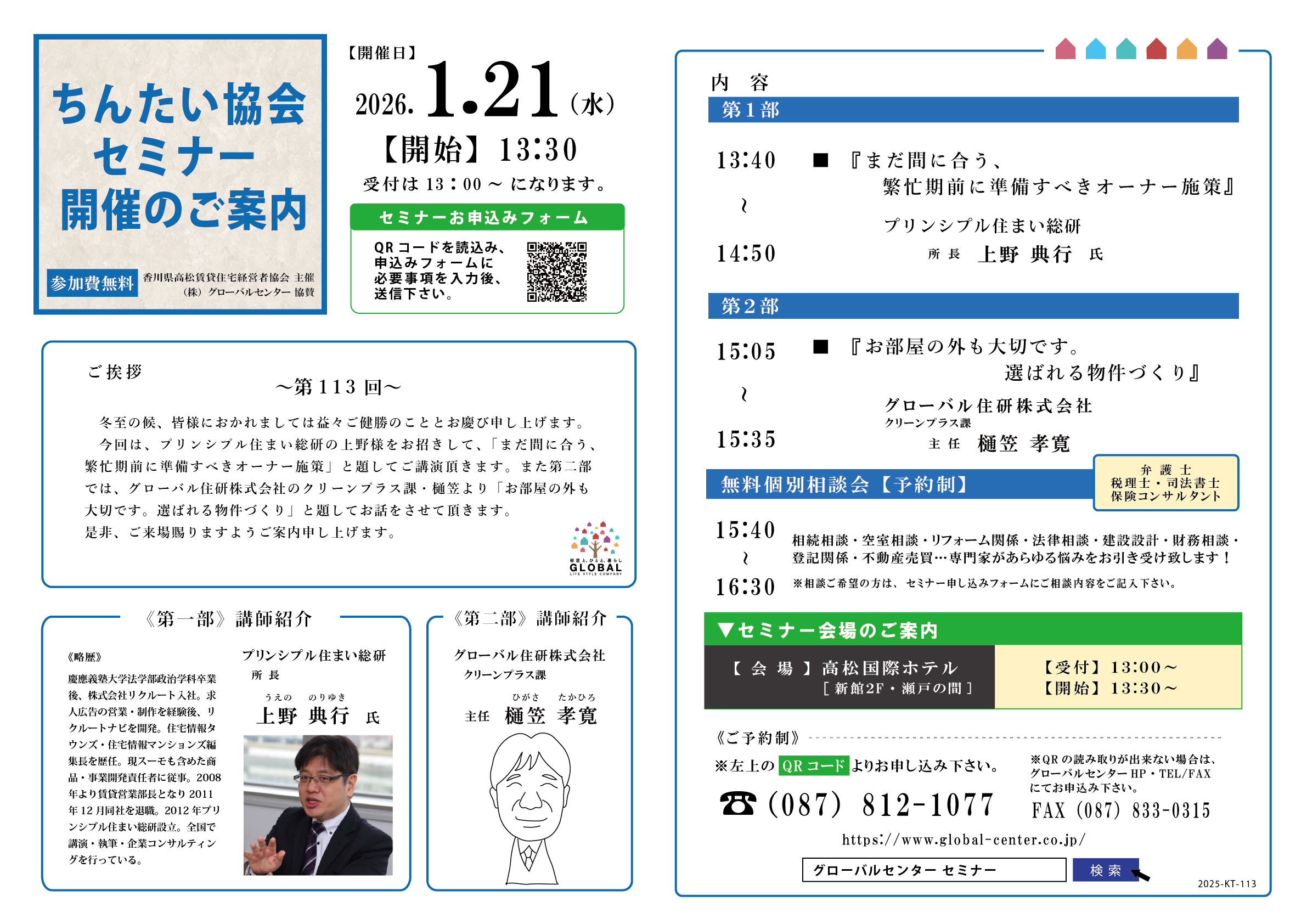 主 催 主催 | 香川県高松賃貸住宅経営者協会 (株)グローバルセンター 協賛 |